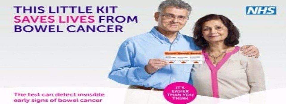 Bowel cancer screening kits are sent to those aged 50-74 years, every 2 years and can help to detect early signs of bowel cancer. We encourage you to take the test. Misplaced it? You can request a test by calling the helpline on 0800 707 6060.