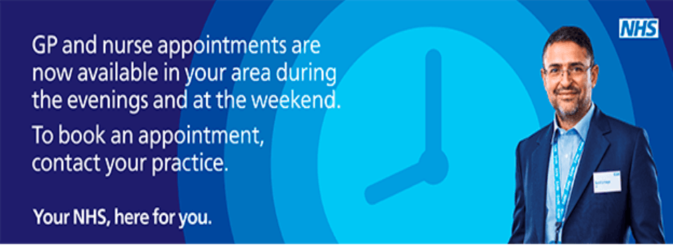 Late evening and weekend appointments available at Spoke clinics - ask at reception